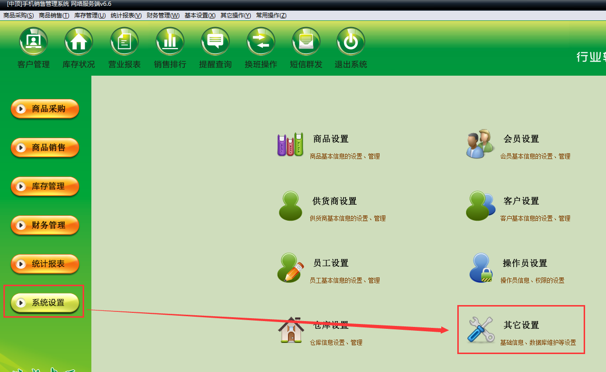 1.登陆中顶手机销售软件前台营业,系统设置→其他设置