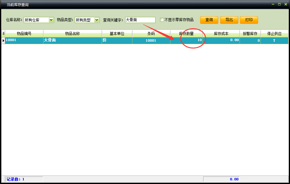 3.商品入库完成以后,可以在库存管理模块,统计报表→当前库存查询中