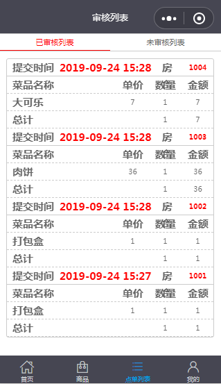 4. 点单列表(可通过软件进行审核)