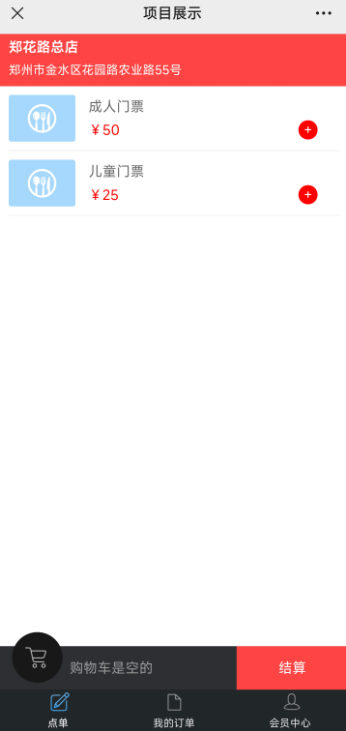 2.在点单界面,点单门票项目,最后结算