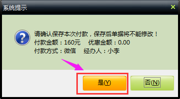 到“付款单”界面,勾选欠款单据,填写付款金额(付款方式、经办人等),点保存