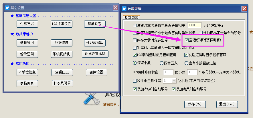 在新弹窗其它设置中,点开【参数设置】,勾选上“启用软件时选择账套”,保存.