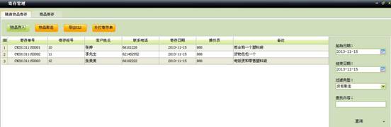 支持对客户随身物品的寄存 和 对商品的寄存。