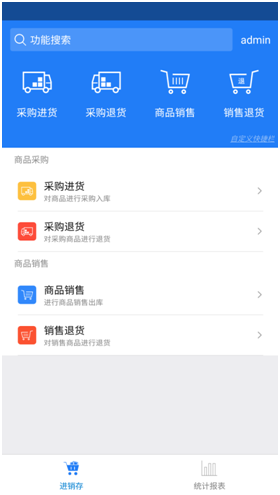 中顶进销存APP 实现电脑端功能有:采购入库、采购退货、商品销售、销售退货、采购订单查询、进退货单查询、应付款统计查询、销售订单查询、销退货单查询、应收款统计查询、库存情况查询、库存分布情况查询、会员消费明细、商品销售排行、营业日报表、营业月报表、客户还款提醒、库存报警提醒、客户销售提醒、销售订单提醒。
